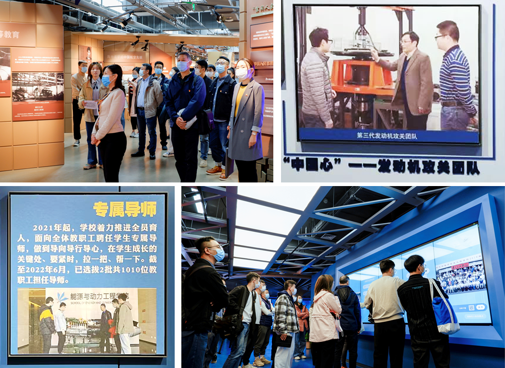 通过参观和讲解员的讲解,师生党员们深入了解、深刻感受了北航为国而生、与国同行的光荣岁月。参观过程中,师生党员们欣喜地看到航发院发动机攻关团队的照片在“科技创新的‘北航模式’”板块中展出;航发院陈志英教授作为专属导师为学生讲述航空发动机结构的照片在“实施有温度的教育”板块中展出。党委书记王文文在参观活动的总结讲话中指出,党支部书记、辅导员、组织员要继续协助航发院党委团结引领全院师生踔厉奋发,勇毅前行,在新征程,取得更多成果和突破。今日一起见证北航七十载荣光,今后一起谱写北航新时代华章!