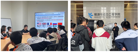 活动中,燃烧党支部充分发挥专业特色,打造“党建+科技”特色实践课堂。支部党员带领师生近距离参观燃烧与冷却热耦合基础研究试验台,通过现场演示与互动问答,揭秘航空发动机核心技术的攻坚历程。