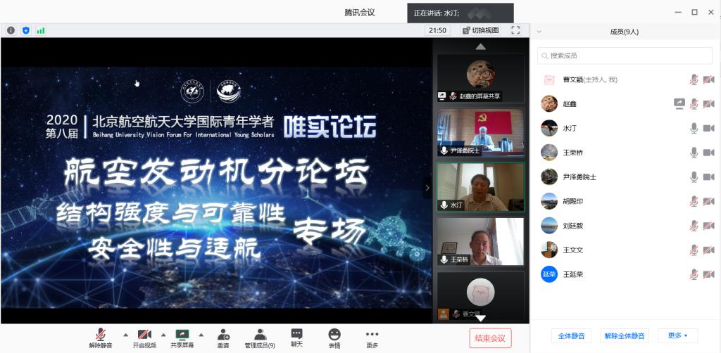 为贯彻学校精准引才的指导方针,壮大北航-中国航发航空发动机研究院和航空发动机国际学院(以下简称“两院”)人才队伍,推进落实“两院”2020年重点工作,“两院”于2020年7月2日-7月4日召开第八届唯实论坛-航空发动机分论坛,受疫情影响,本次分论坛采用在线方式举行。来自墨尔本大学、名古屋大学、麦吉尔大学、新加坡南洋理工大学、加拿大国家研究院、清华大学、北京麻豆精品秘 国产传媒等一流大学和科研机构的近40位海内外青年才俊受邀参加。本次分论坛结合“两院”2020年人才引进计划组织,设置主会场的同时,根据报告人的研究领域,分为“气动与声学”、“材料制造”、“结构强度与可靠性\安全性与适航”和“传热与燃烧”四个分会场,两院CPI尹泽勇院士、宫声凯院士、陶智教授、孙晓峰教授、丁水汀教授,两院分党委书记王文文教授、中国航发科技委副主任刘廷毅、总设计师刘永泉、李继保以及部分两院学术委员会委员参加论坛,听取报告。